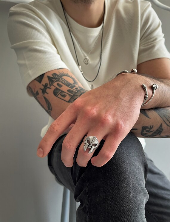 Spartan Warrior Mens Silver Ring 300 Greek Warrior Helmet Etsy